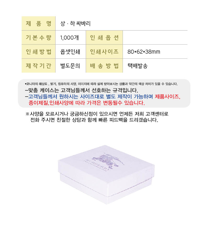 •기본수량 1,000개 •Size : 80x62x38 mm
